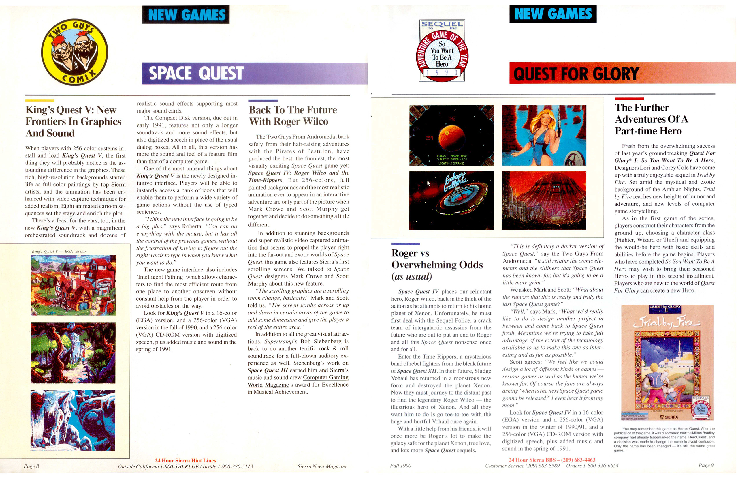 - The Men Who Designed Space Quest III (Sierra Newsletter, Spring 1989)