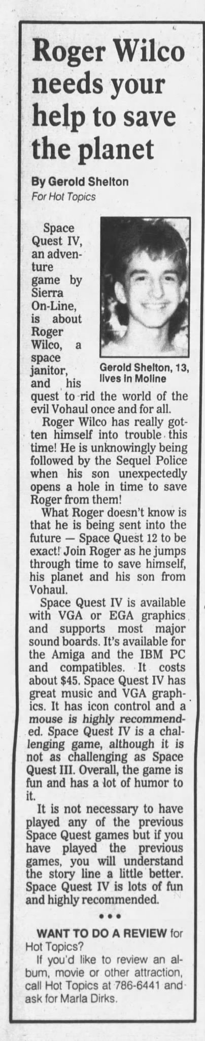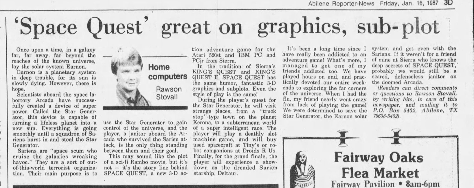 - Space Quest I (Abilene Reporter-News, January 1987)