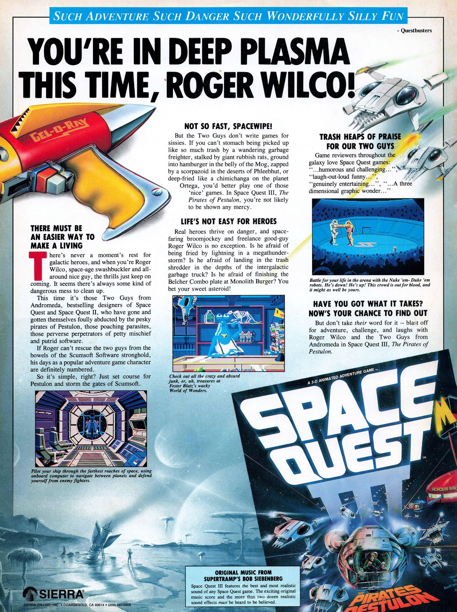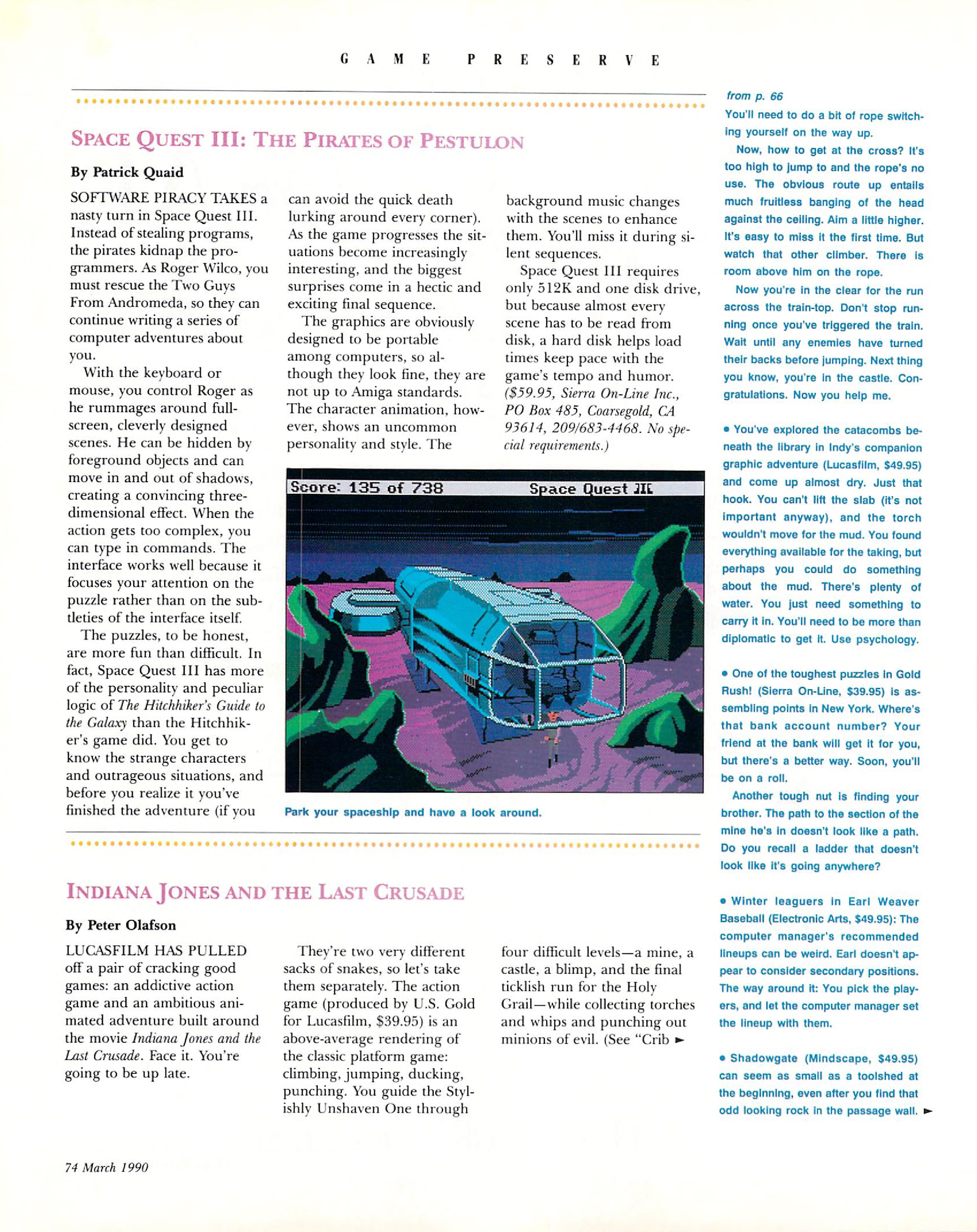 - Space Quest III (Game Player's PC Strategy Guide, July/August 1989)