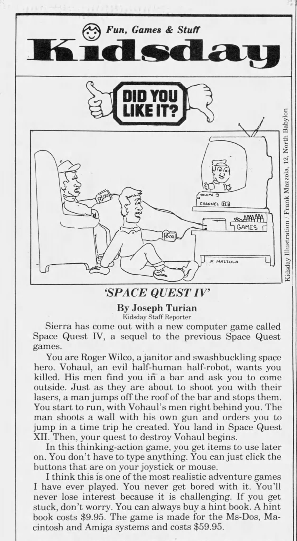 - Space Quest IV (Newsday Suffolk, January 1992)