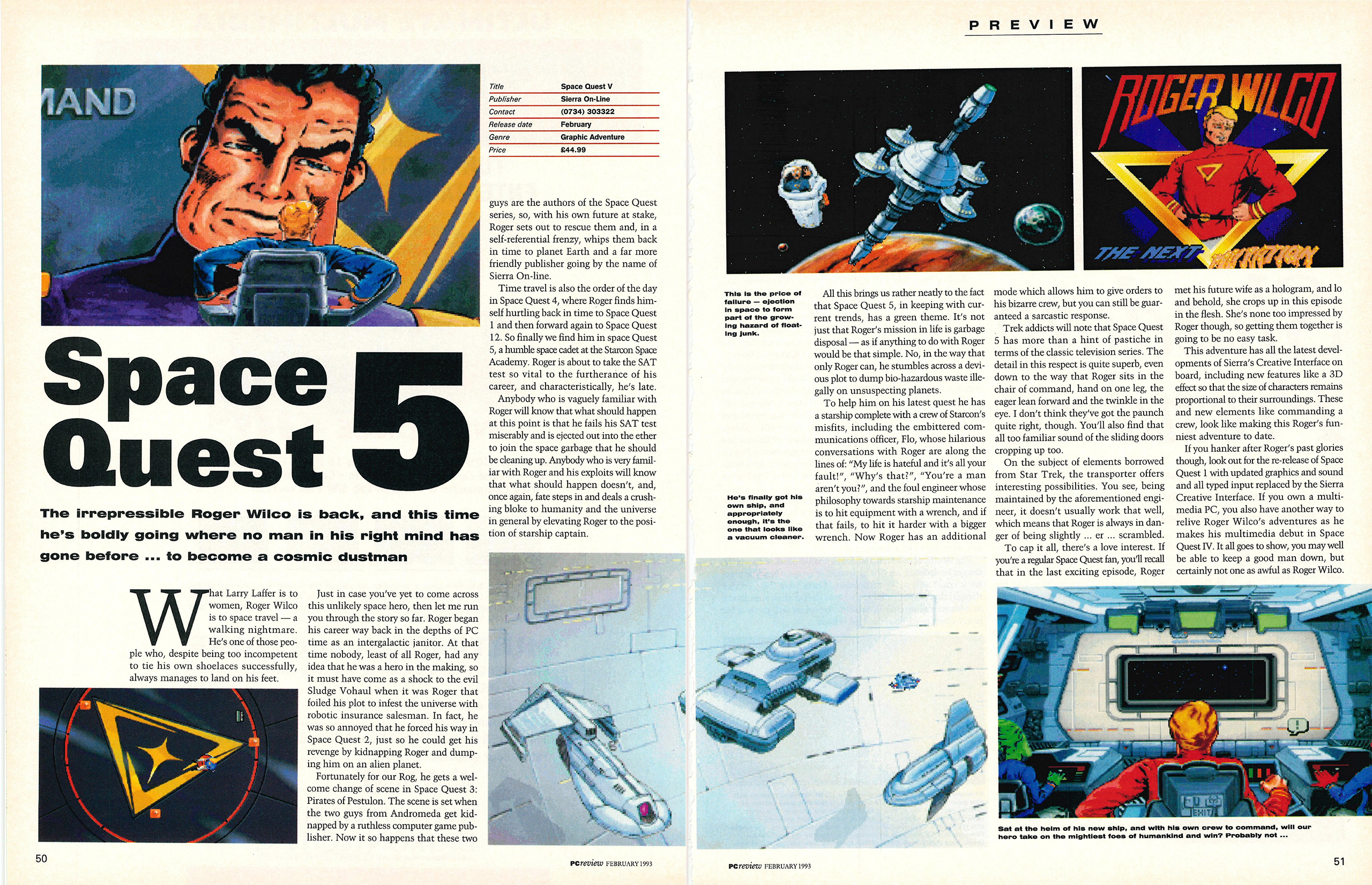 - Space Quest V Preview (PC Review, Febuary 1993)