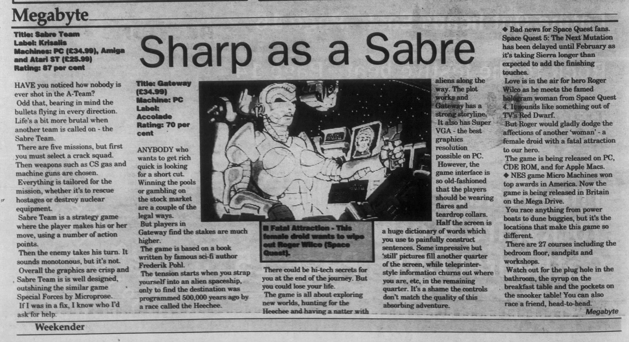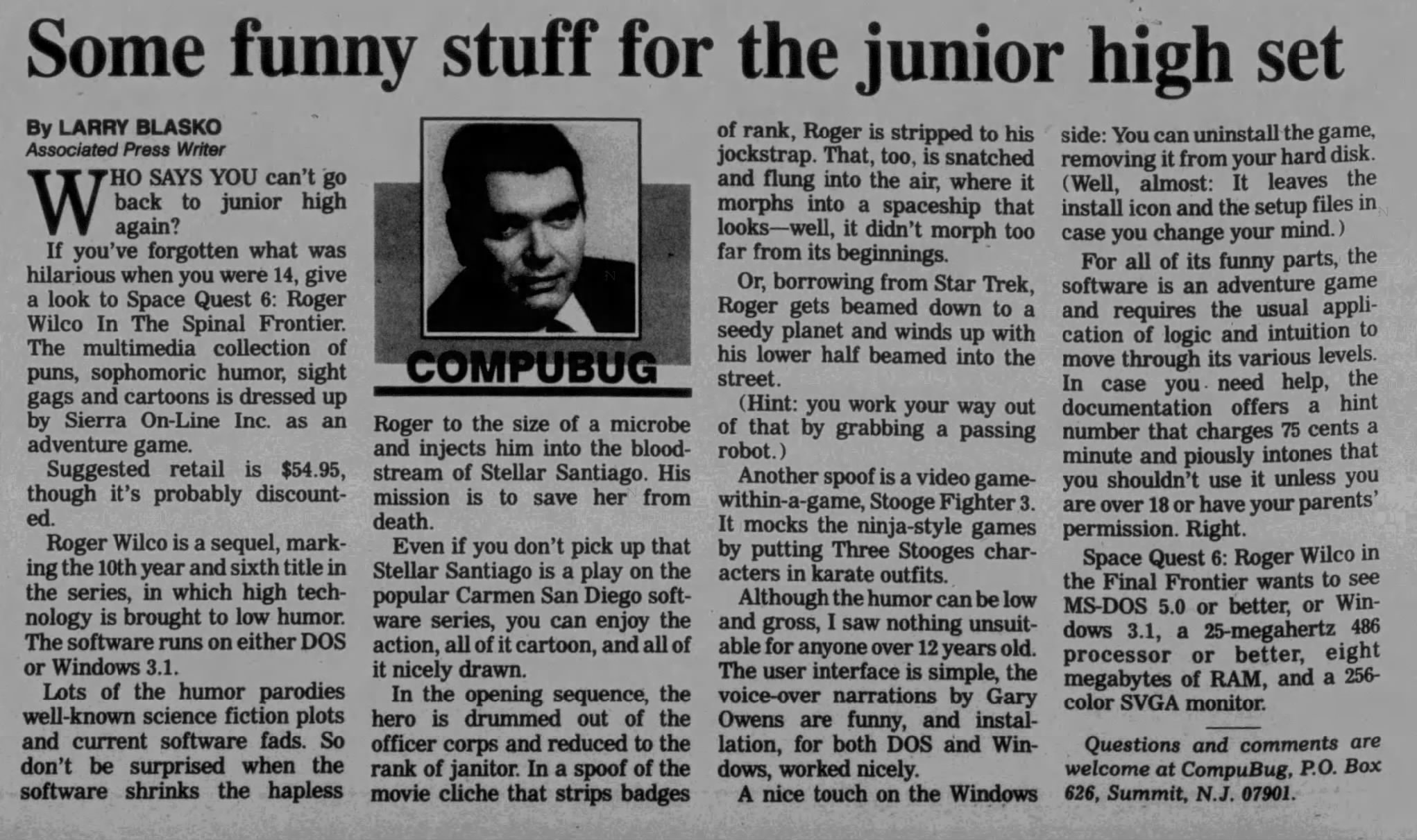 - Bad News for Space Quest Fans: SQ5 Delayed (The Press, December 1992)