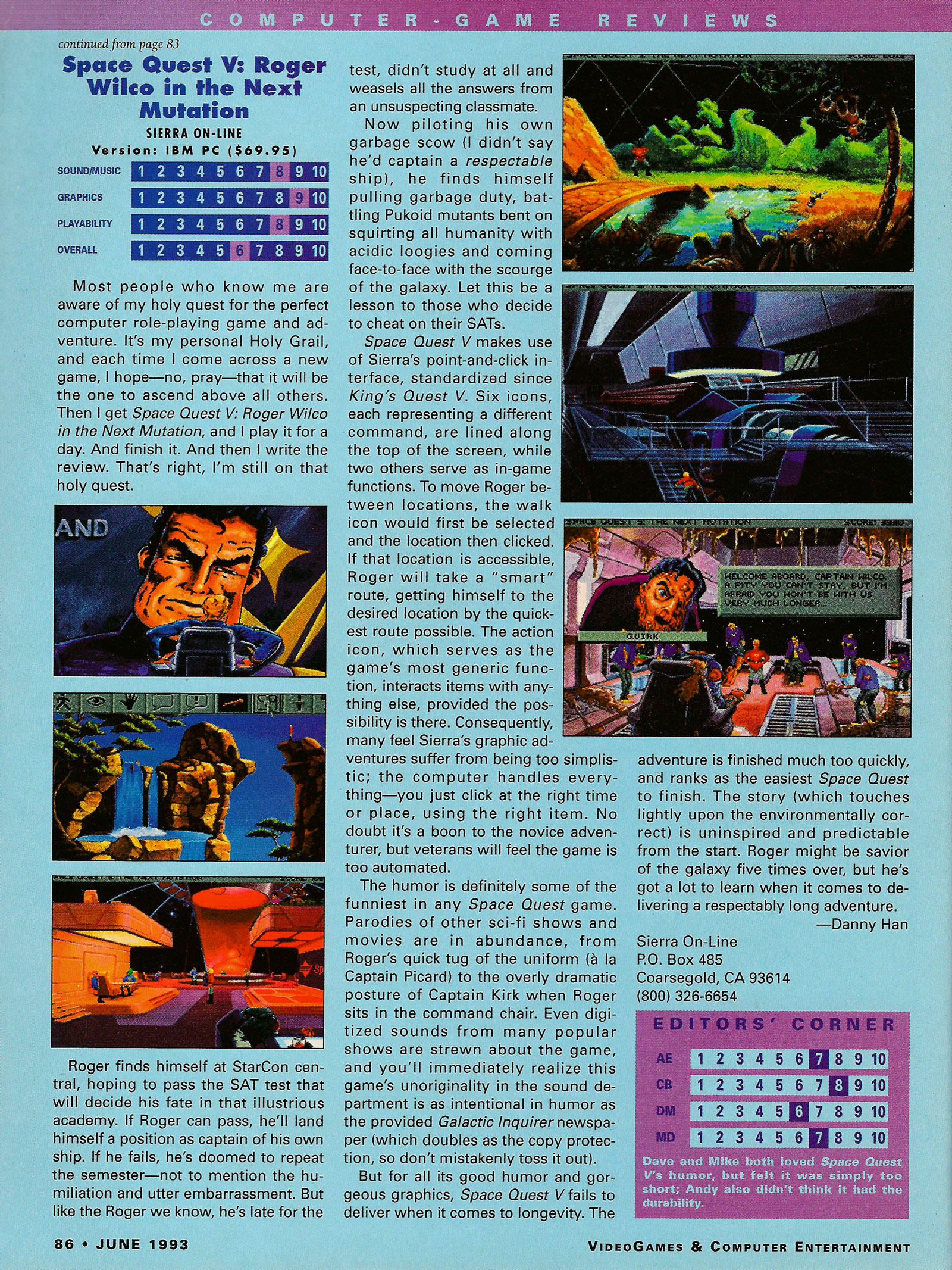 - Space Quest V (Video Games & Computer Entertainment, June 1993)