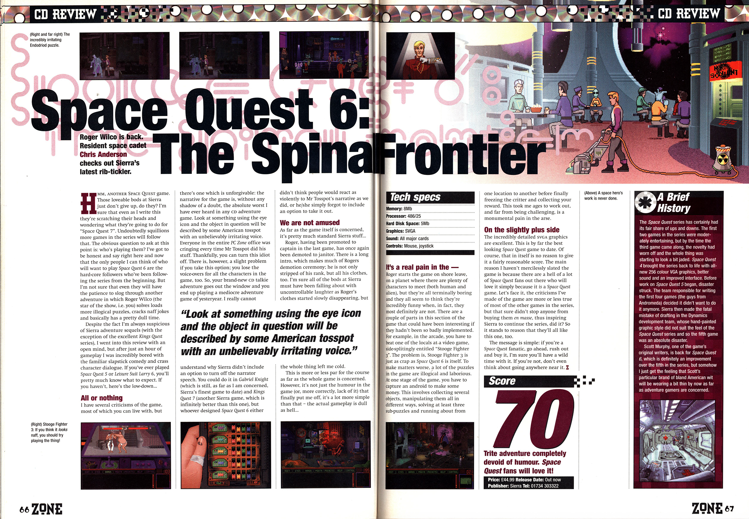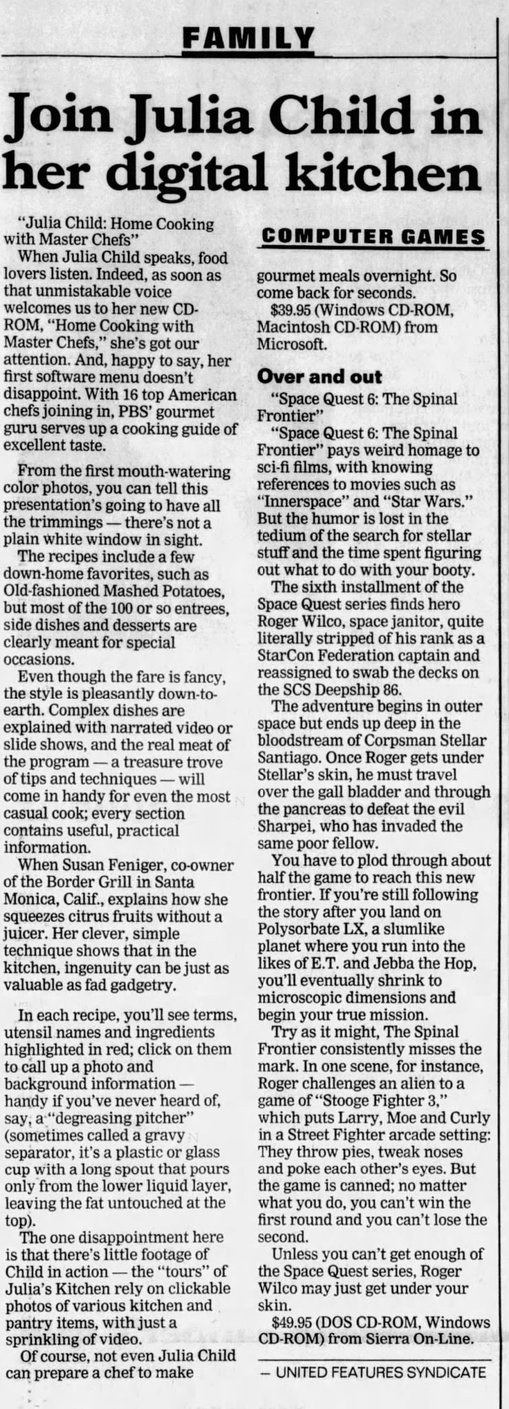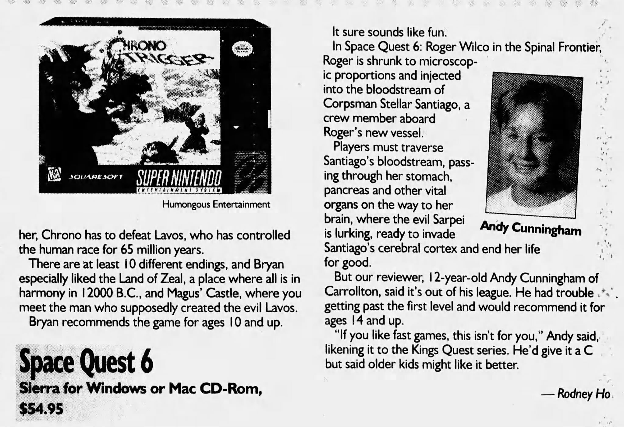 - Space Quest 6 (The Free Lance-Star, September 1995)