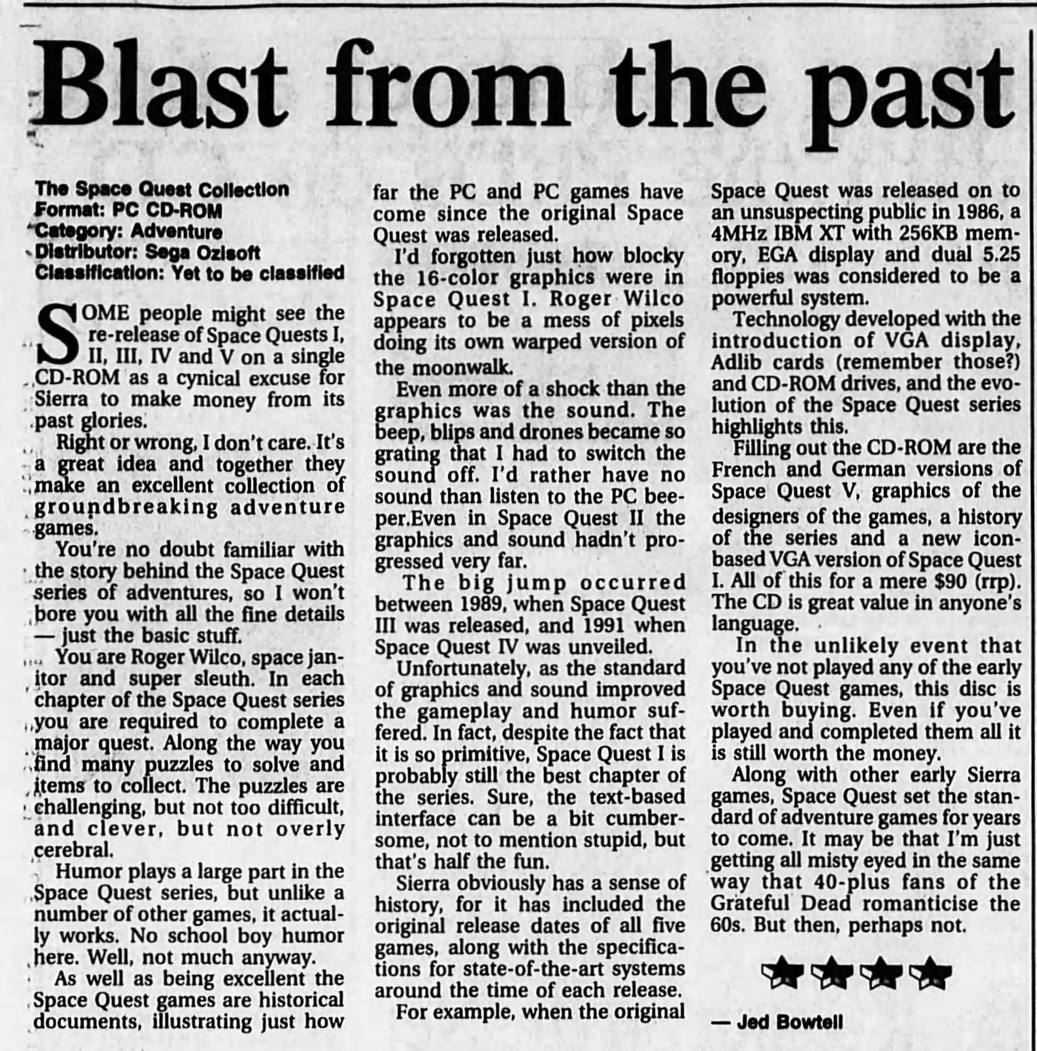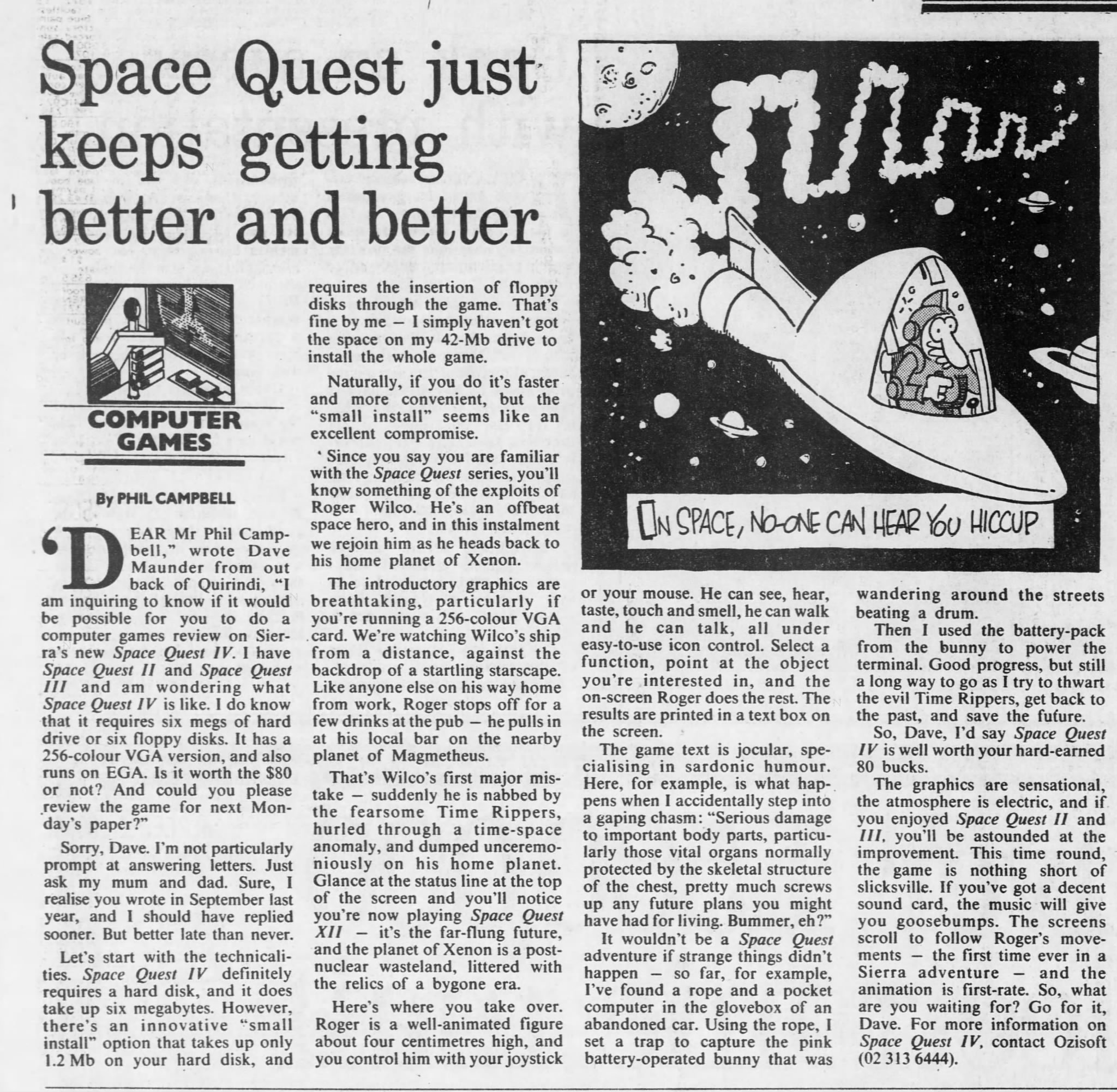 - Space Quest IV (Sydney Morning Herald, March 1992)