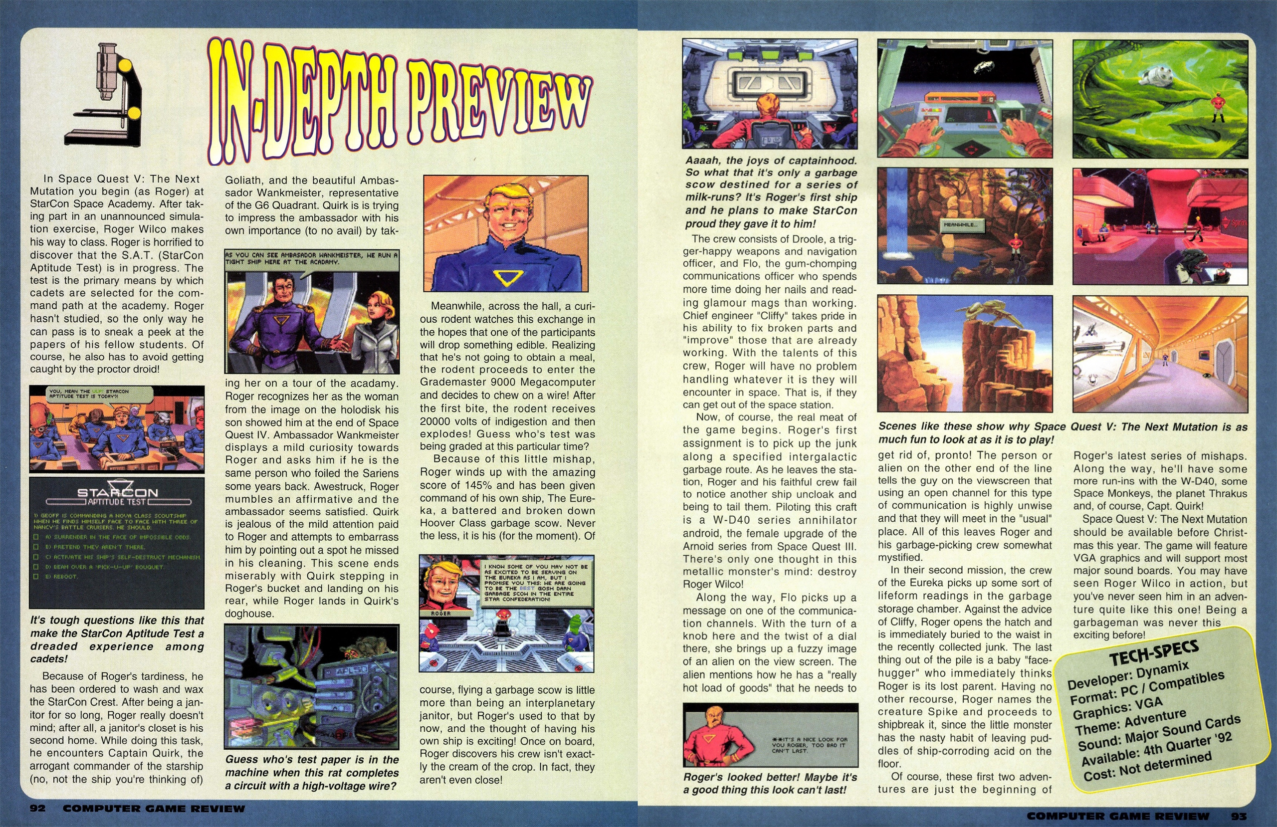 - In-Depth Preview: Space Quest V (Computer Game Review, December 1992)